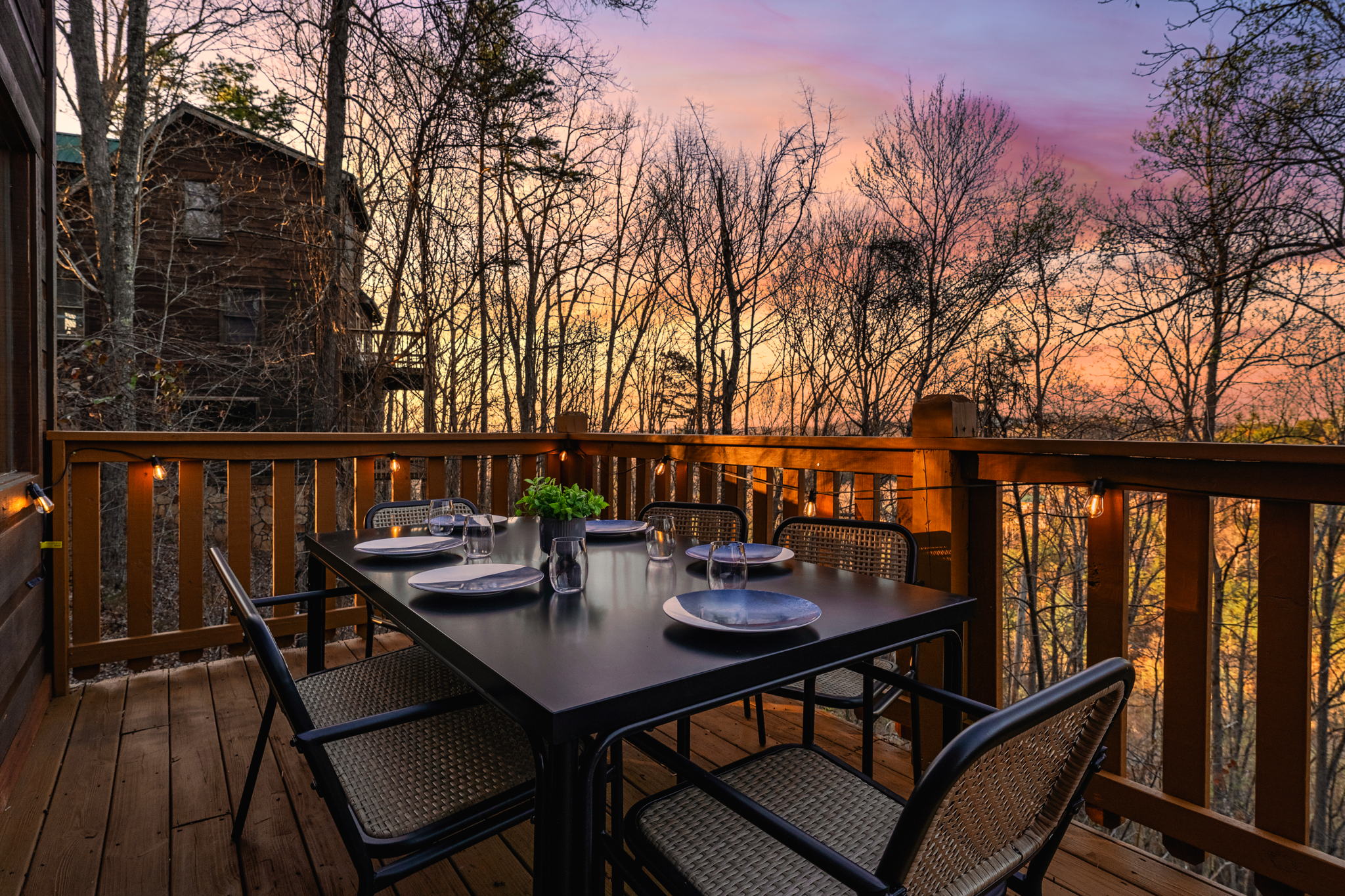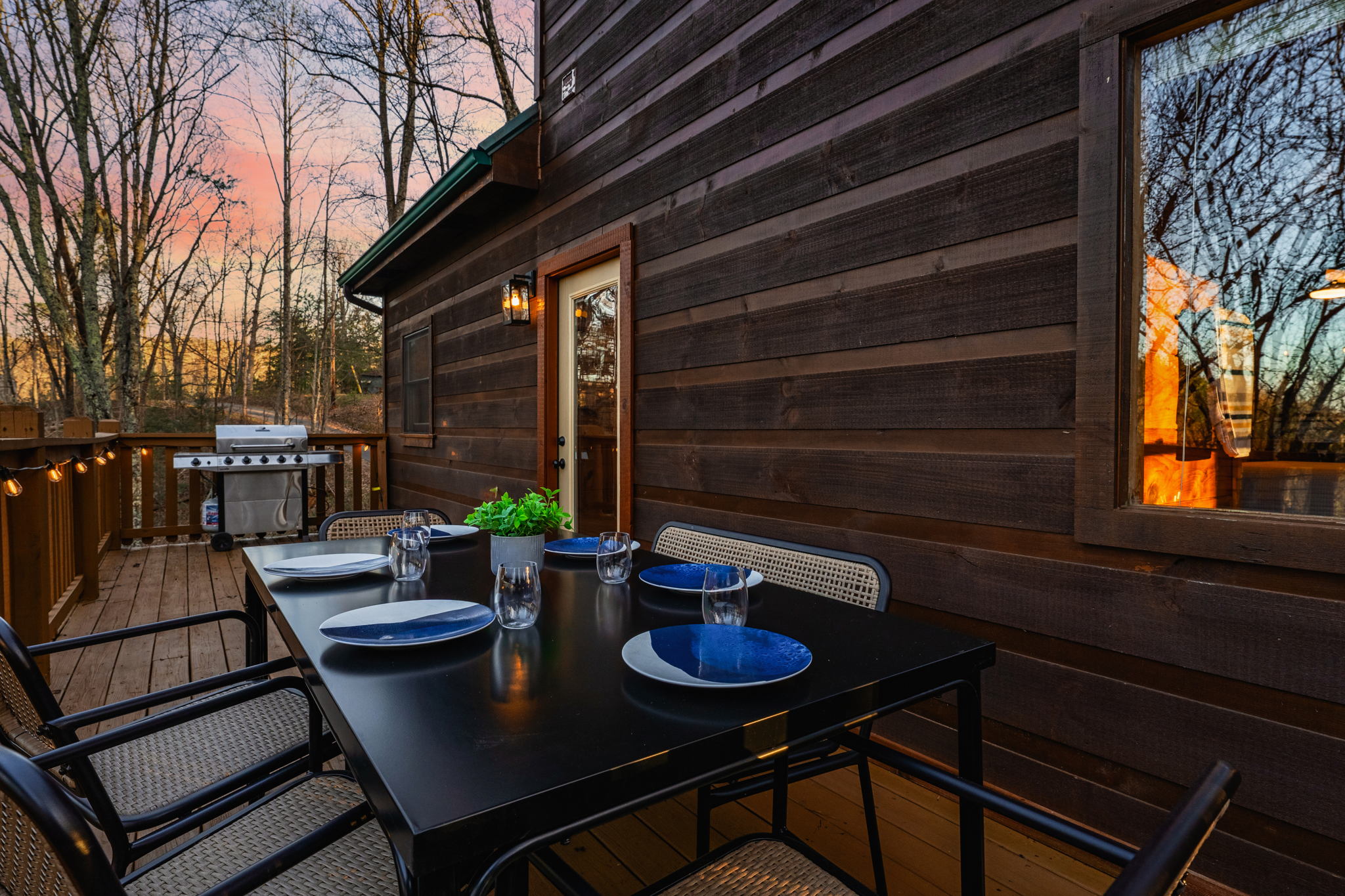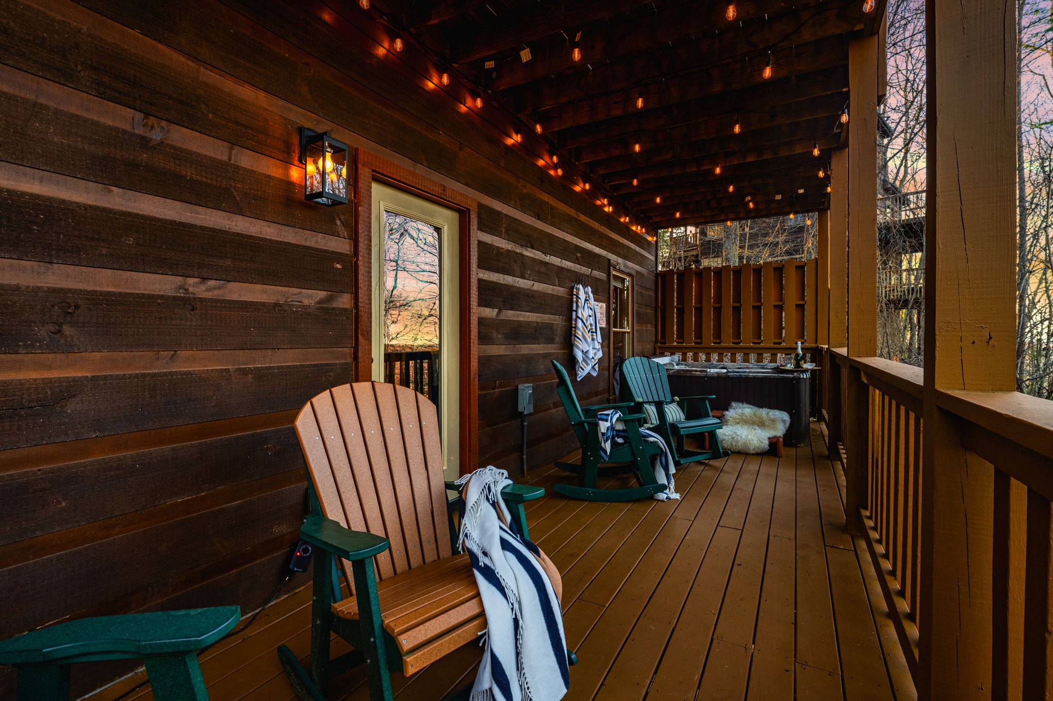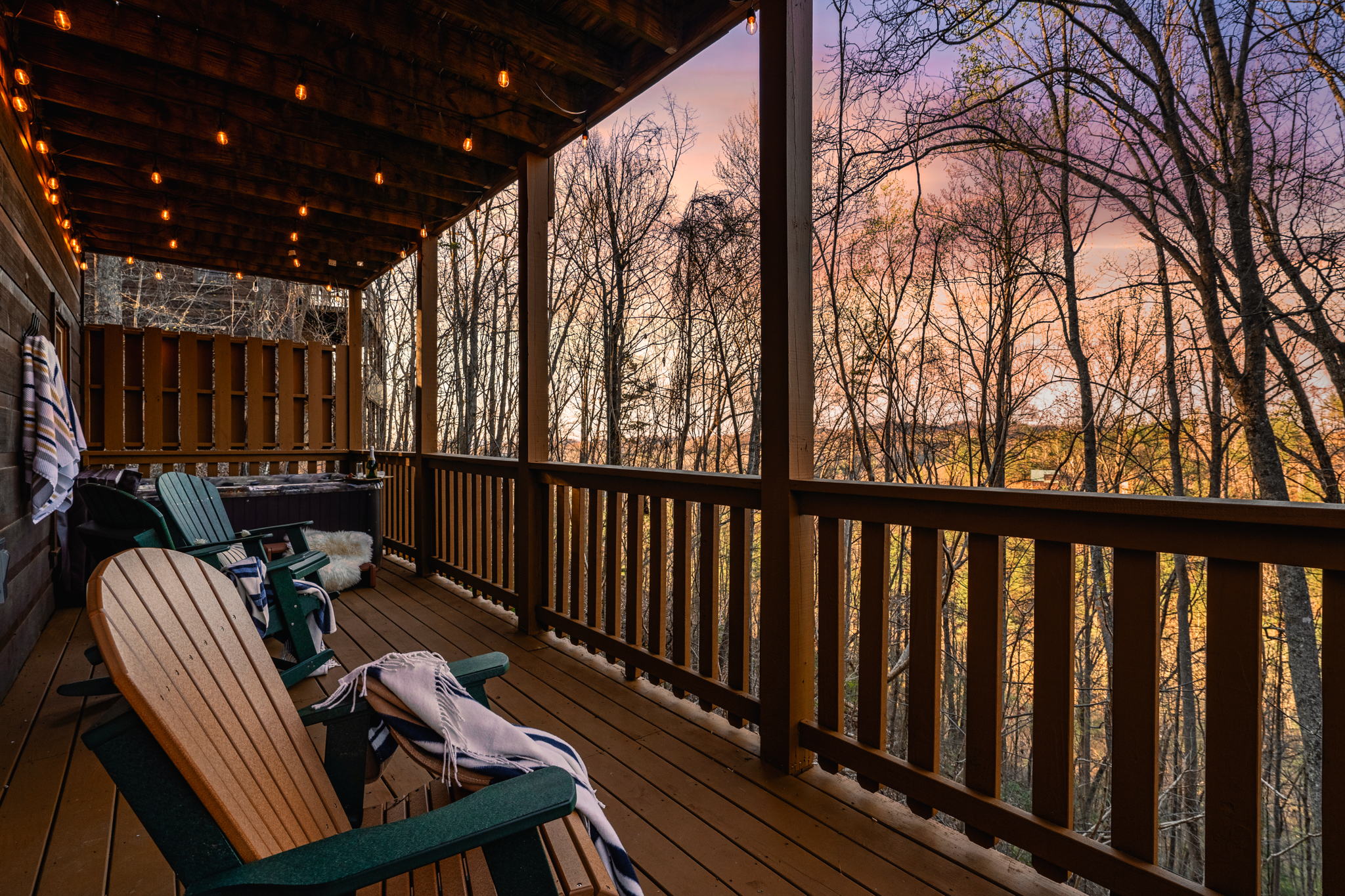 ▻ Relax in the hot tub with views of the trees