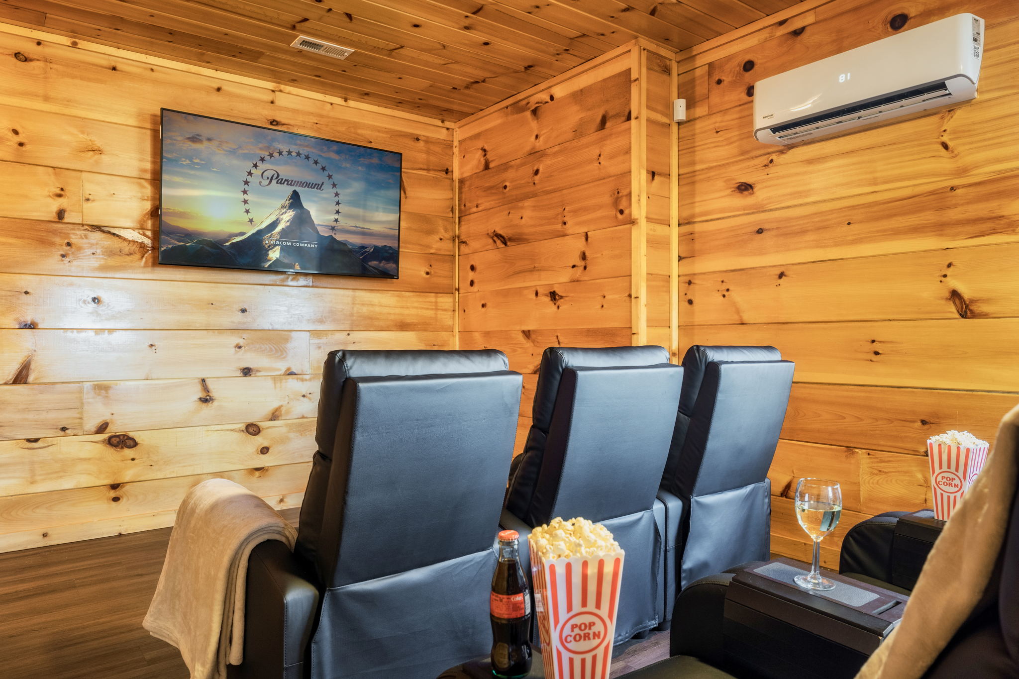 What a beautiful cabin in the heart of the mountains. Our stay was one to remember and our children loved the movie theater. Space was great for our family of 4!