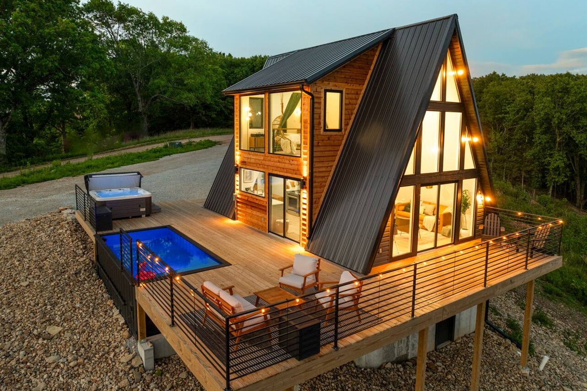 If you're looking for a design-forward, luxury A-Frame with private pool, breathtaking lake views, and true romantic getaway vibes — Skyline A-Frame delivers.