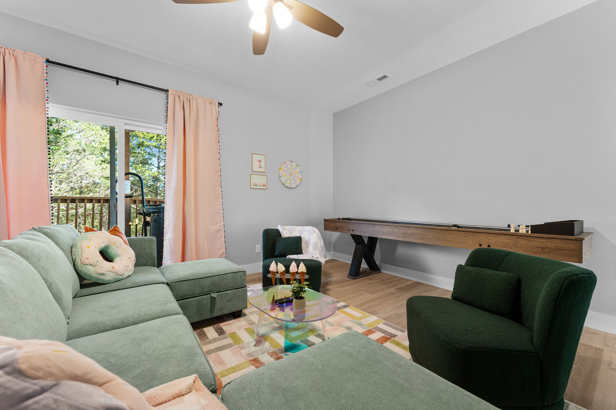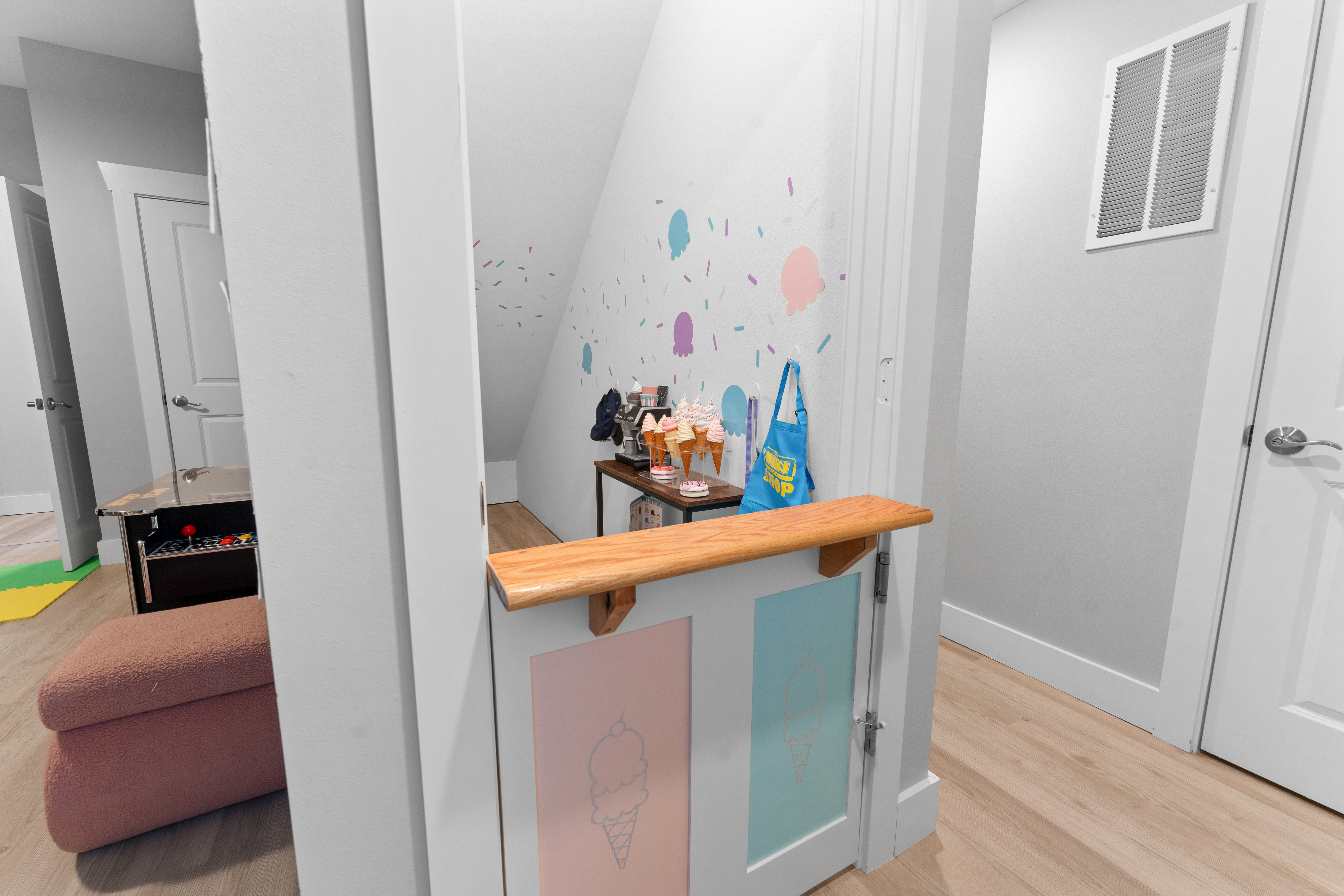 Our granddaughter absolutely loved the kitchen play area off of the bunkbed room. She also really liked the sprinkle shaker :) The spices provided were the best selection of any VRBO we've ever stayed at before and much appreciated! The location of the accommodation was close enough to all the attractions to be easy to get to but far enough away to be away from the crowds of this area. Overall, we had a great experience and I would recommend this property.