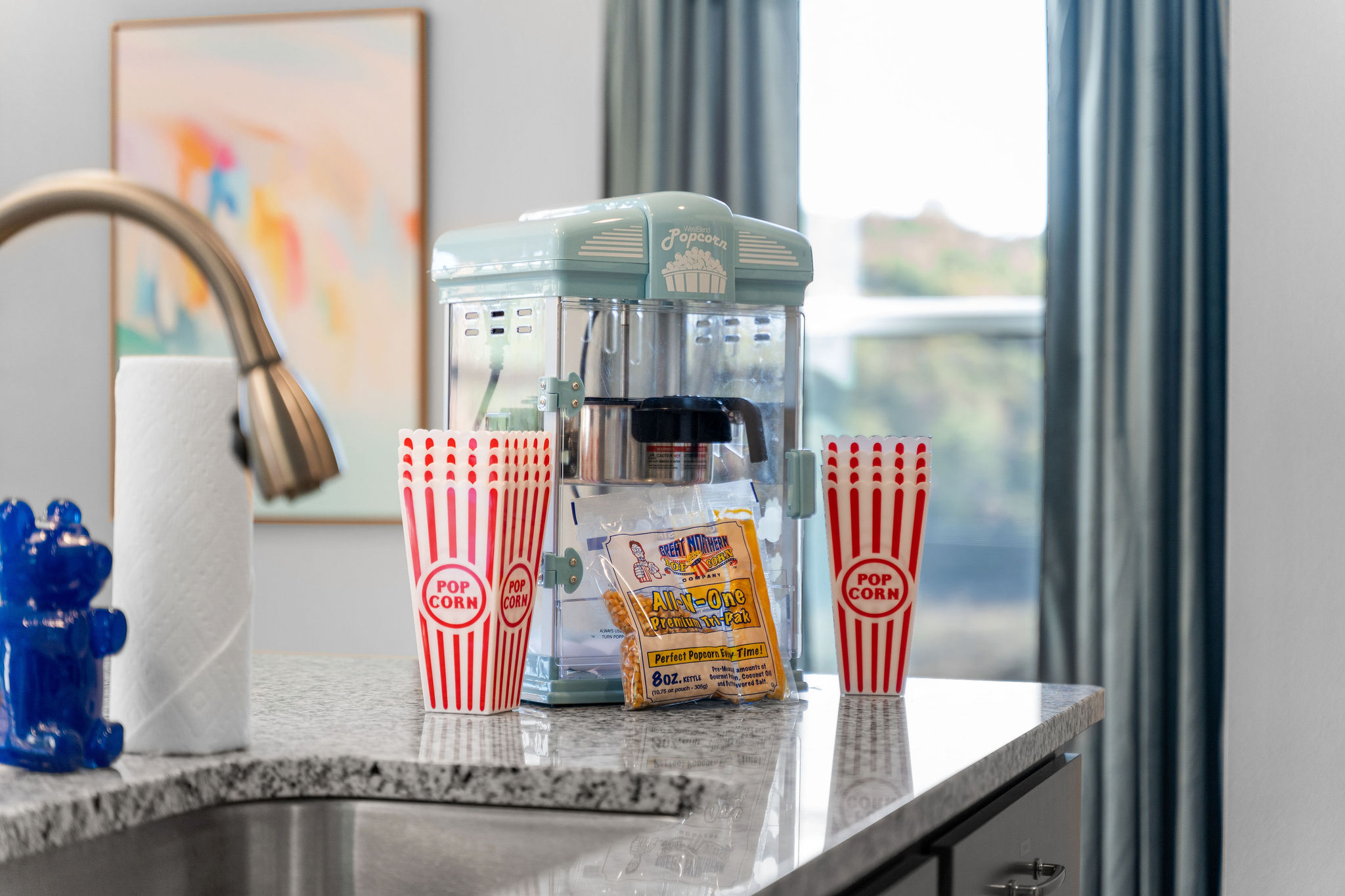 ✔ Projector movie theater room for streaming TV and movies with a popcorn machine and milk shake maker machines (cable/logins not provided)