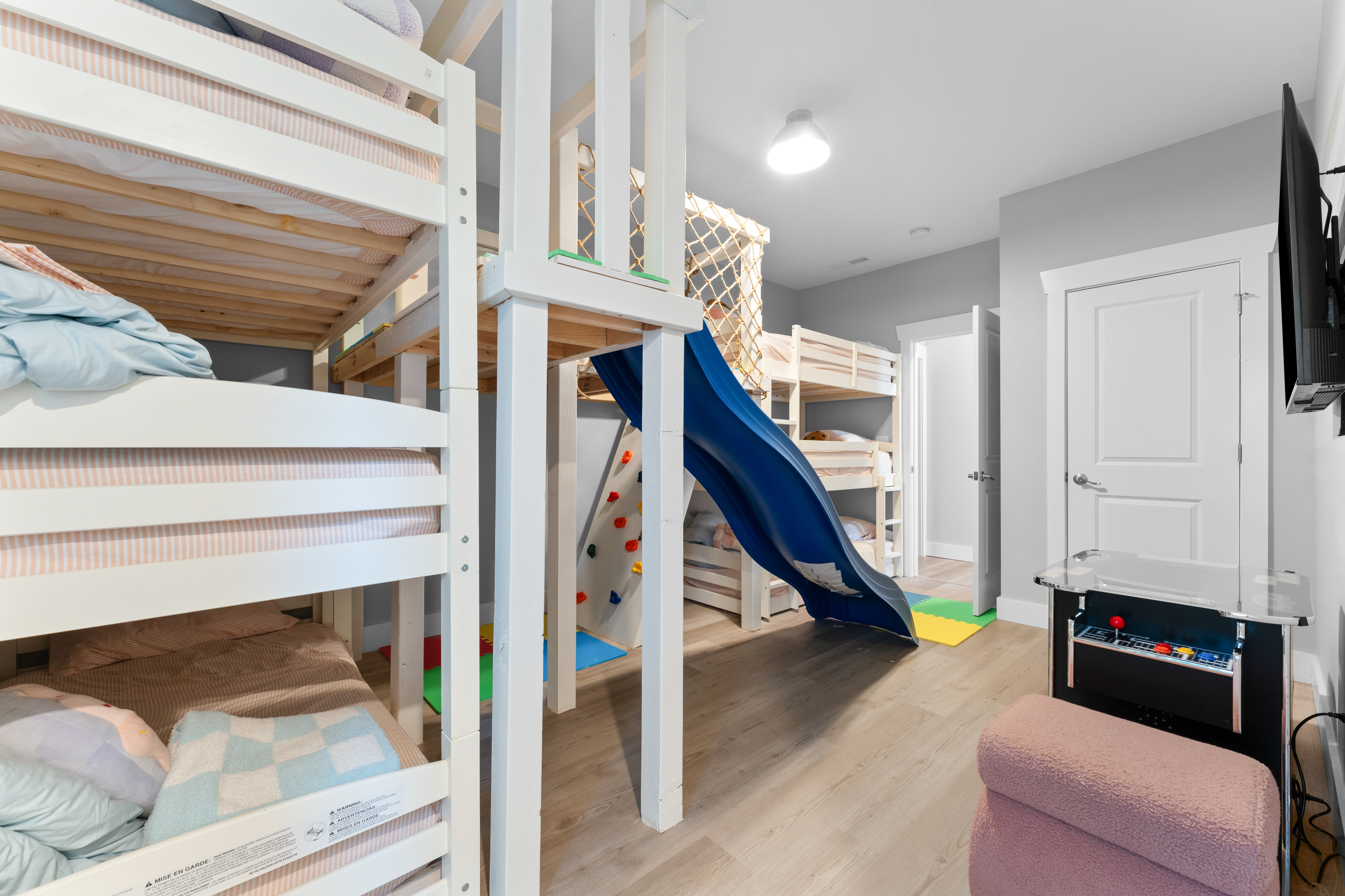 🛏 Lower Floor Bedroom 4: 6 twin beds + bathroom attached (sleeps 6)